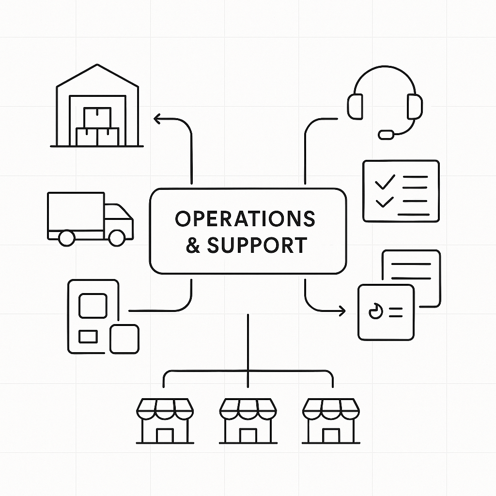 Shared infrastructure for ads, support, logistics & finance across brands.