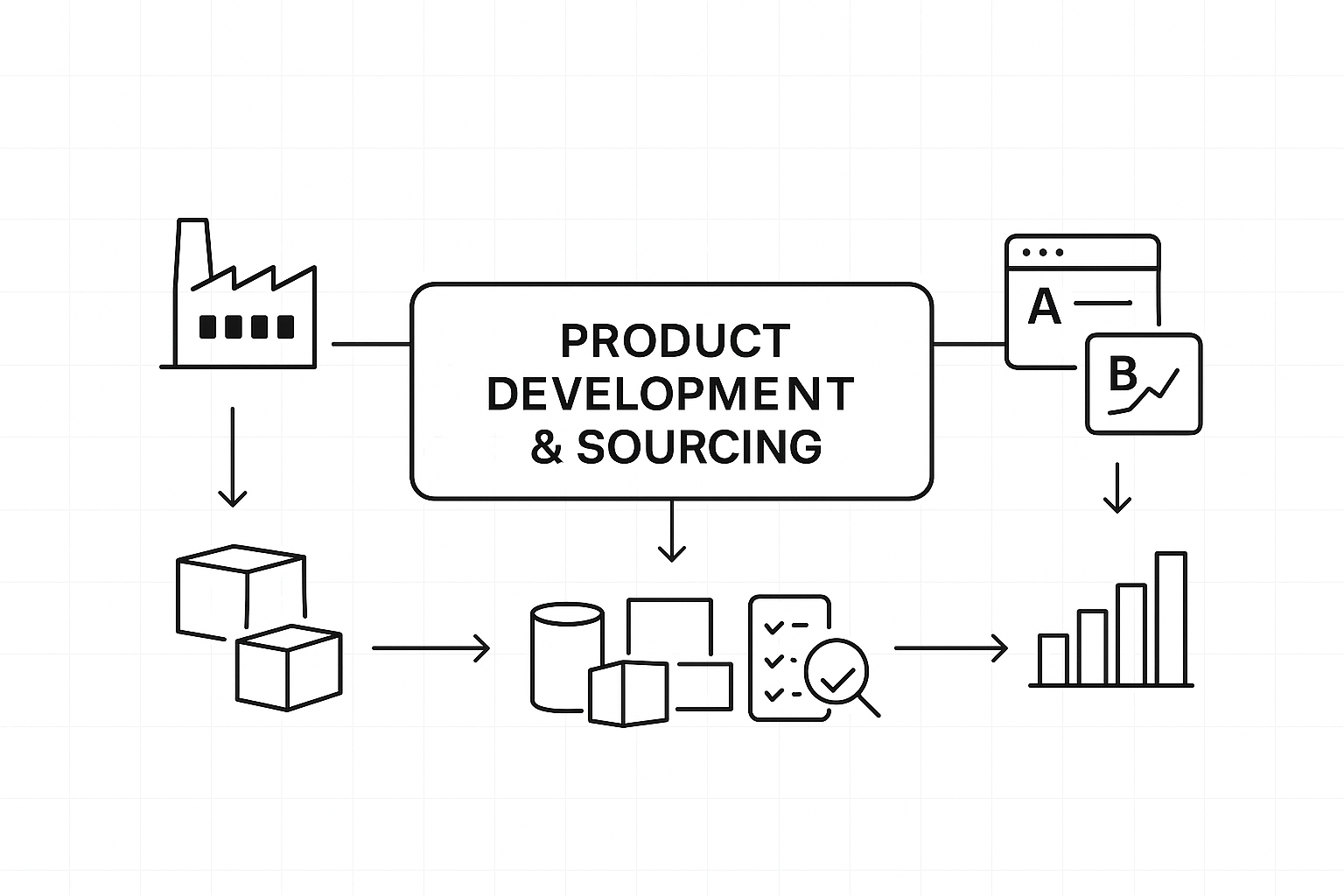 We run structured tests to understand if a product deserves a brand, or just a quick campaign. Controlled budgets, tight feedback loops, and clear kill / scale rules.